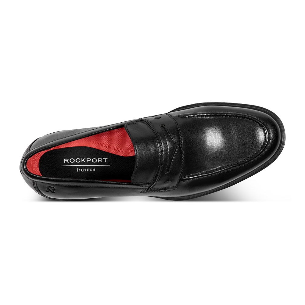 Refresh your shoe collection with the Keenan dress penny loafers from Rockport. Featuring a slip-on silhouette, almond shaped toe and a cushioned insole.**This shoe has stretch adapt technology** Featuring truTECH® technology for lightweight shock absorption. This shoe is orthotic friendly.
