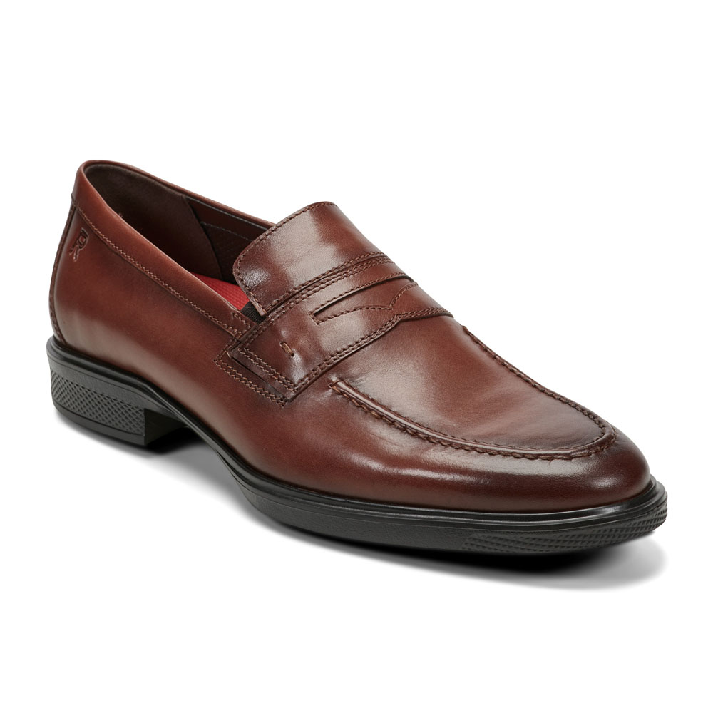 Refresh your shoe collection with the Keenan dress penny loafers from Rockport. Featuring a slip-on silhouette, almond shaped toe and a cushioned insole.**This shoe has stretch adapt technology** Featuring truTECH® technology for lightweight shock absorption. This shoe is orthotic friendly.